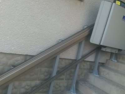 Schodišťová sedačka s automatickým zvedáním kolejnice, Praha 10